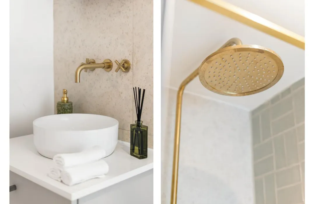 Stylish Seaside Apartment Minutes From Beach har ett badrum med hårtorkar.